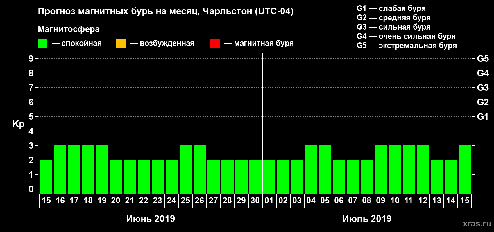 Прогноз магнитных бурь в Чарльстоне — 15 июня 2019 года