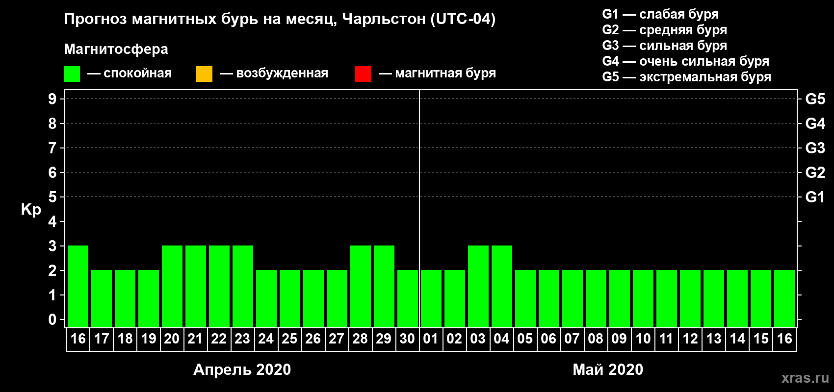 Прогноз магнитных бурь в Чарльстоне на 16 апреля 2020 года