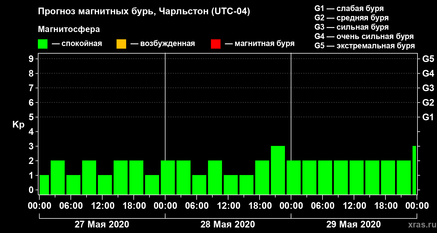 Прогноз магнитных бурь в Чарльстоне на 27 мая 2020 года