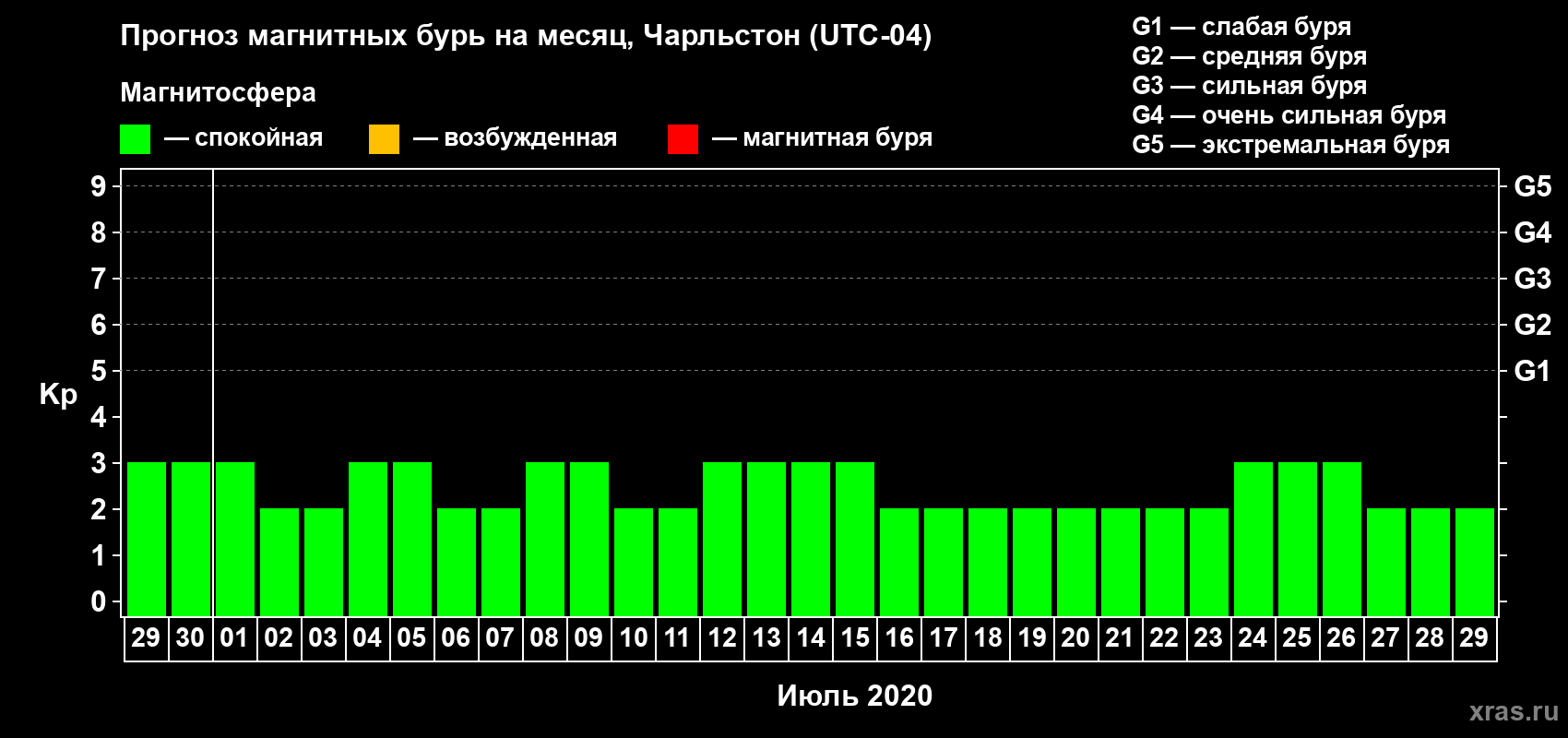 Прогноз магнитных бурь в Чарльстоне — 29 июня 2020 года