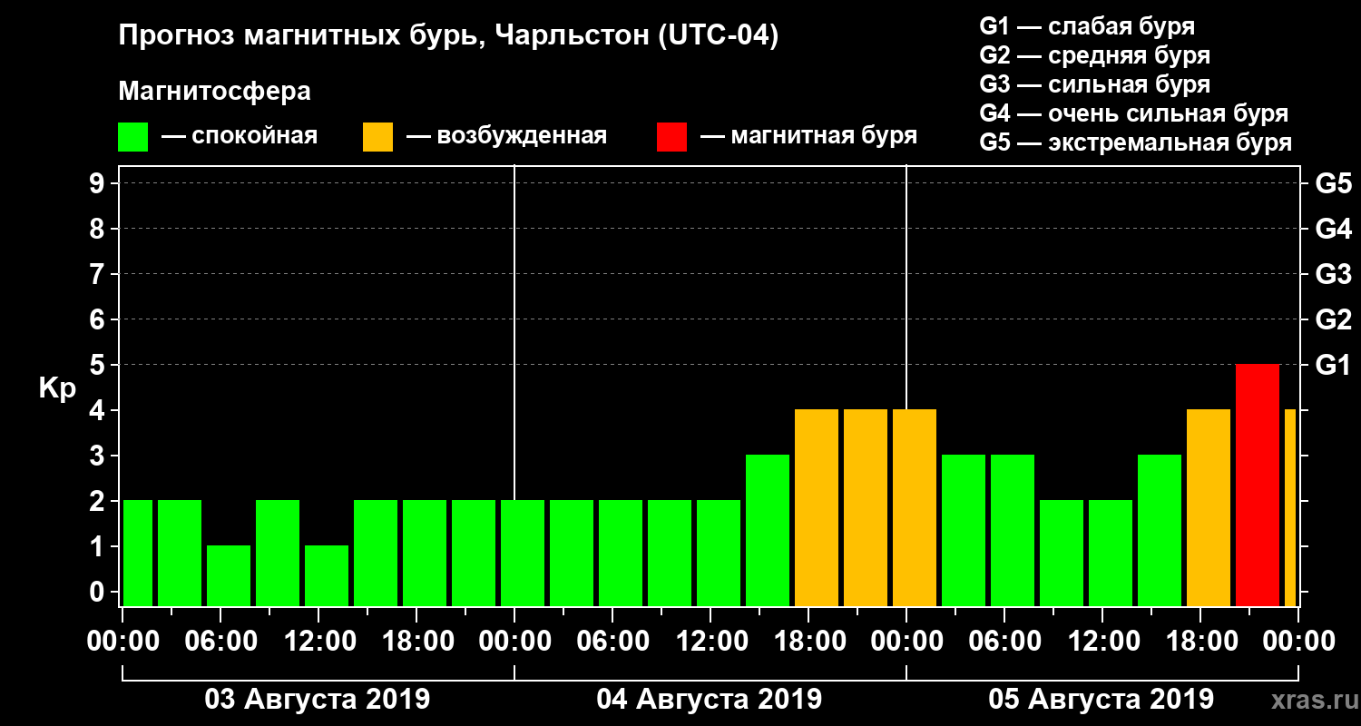 Прогноз магнитных бурь в Чарльстоне — 3 августа 2019 года