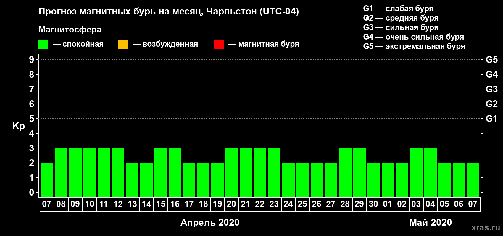 Прогноз магнитных бурь в Чарльстоне на 7 апреля 2020 года