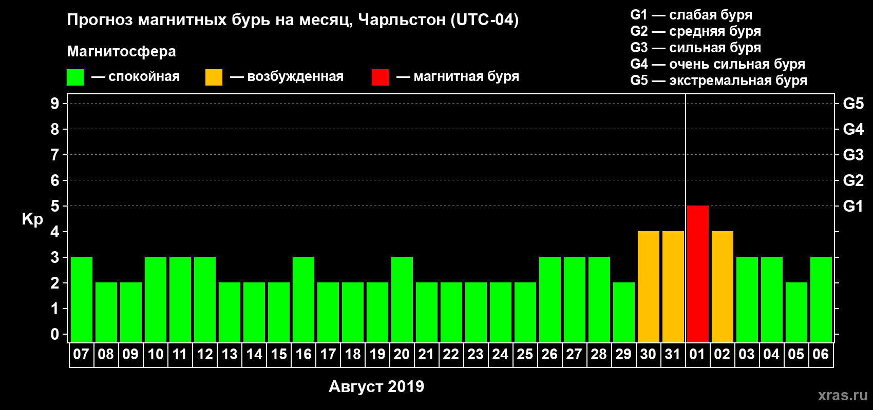 Прогноз магнитных бурь в Чарльстоне — 7 августа 2019 года