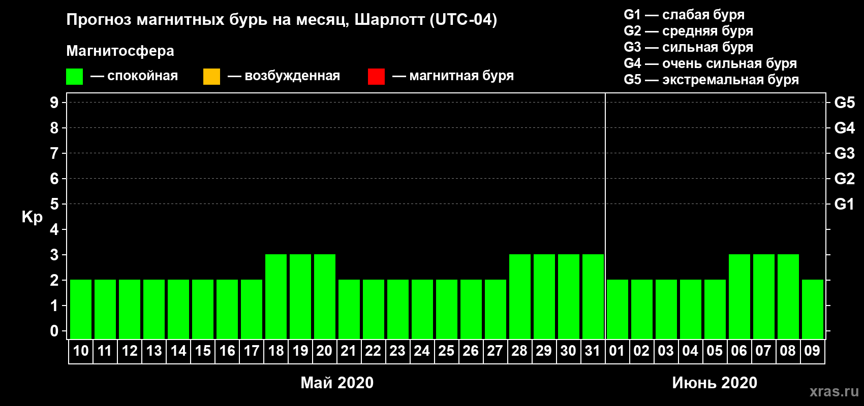 Прогноз магнитных бурь в Шарлотте на 10 мая 2020 года