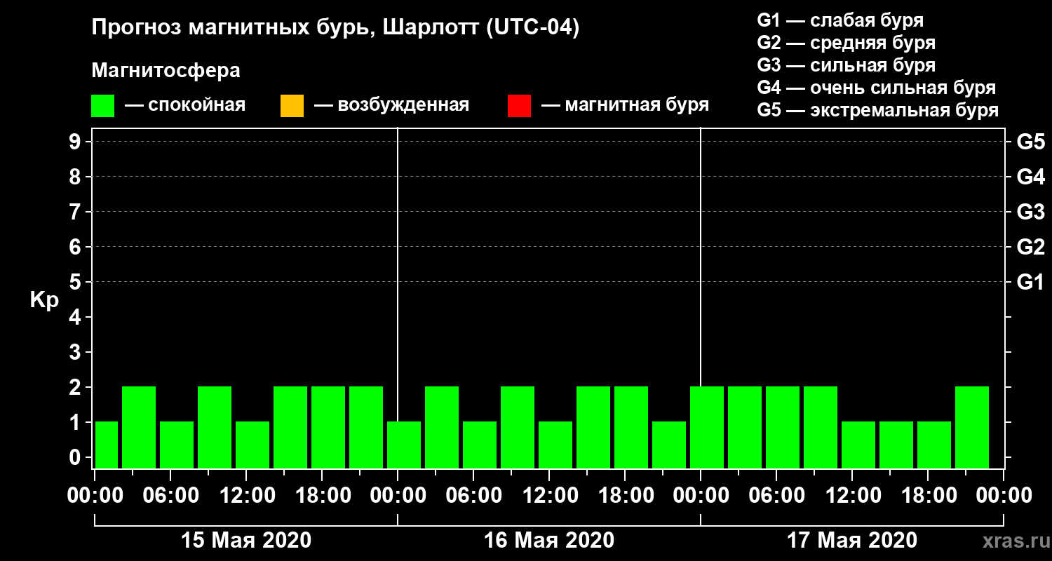 Прогноз магнитных бурь в Шарлотте на 15 мая 2020 года