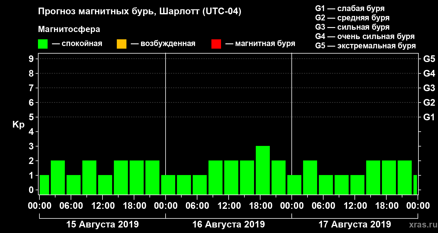 Прогноз магнитных бурь в Шарлотте — 15 августа 2019 года