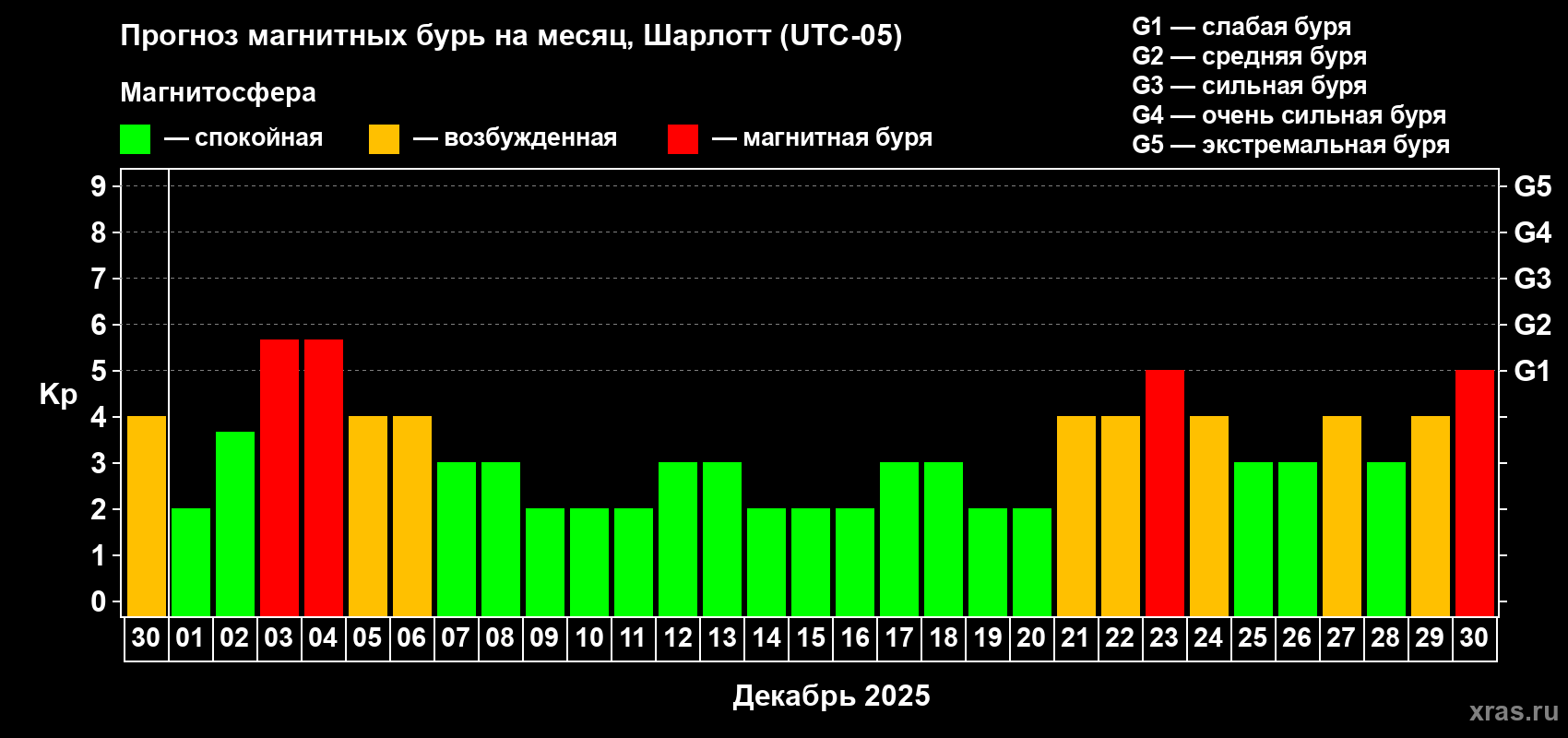 Прогноз магнитных бурь в Шарлотте — 30 ноября 2025 года