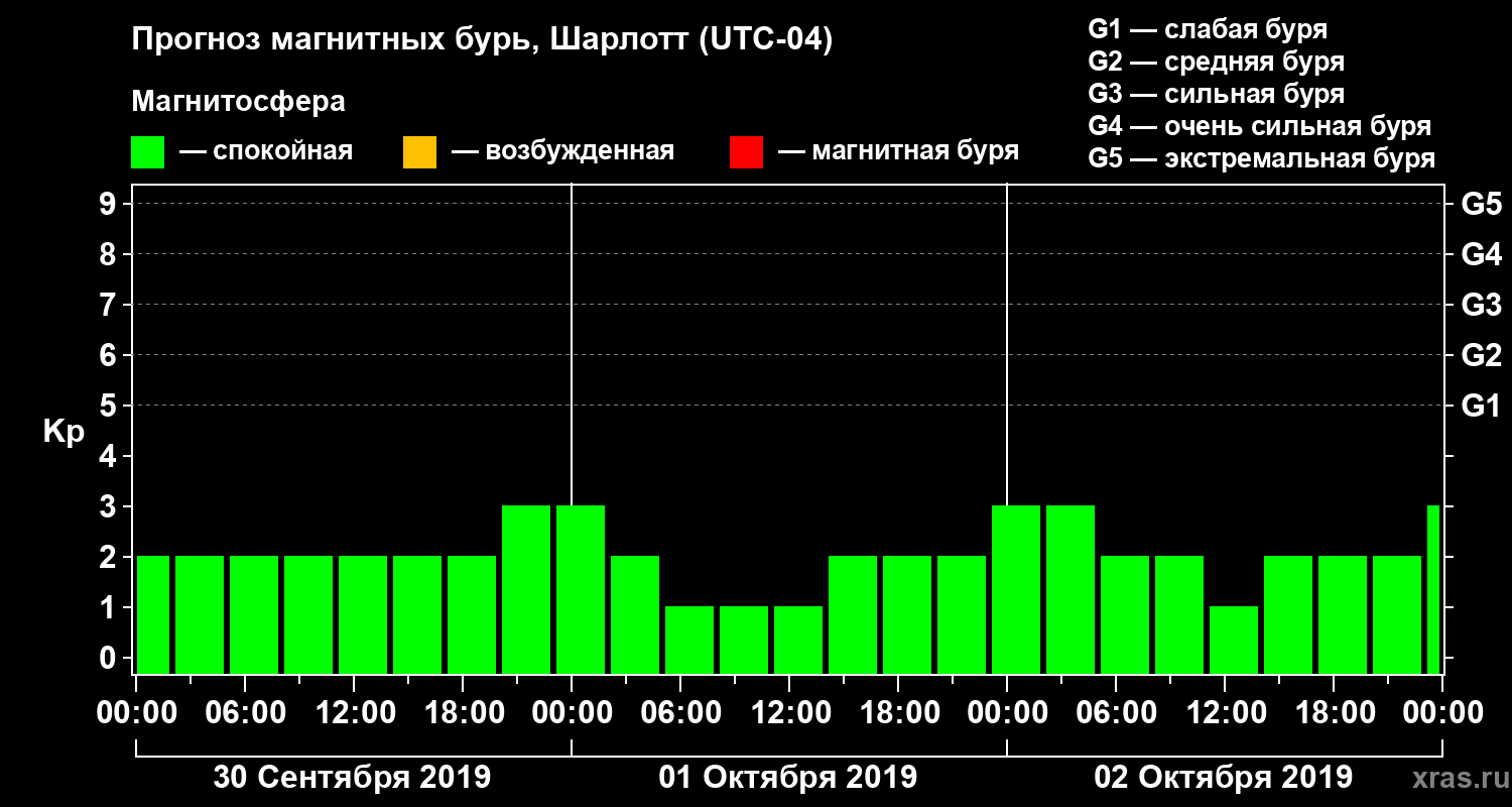 Прогноз магнитных бурь в Шарлотте — 30 сентября 2019 года
