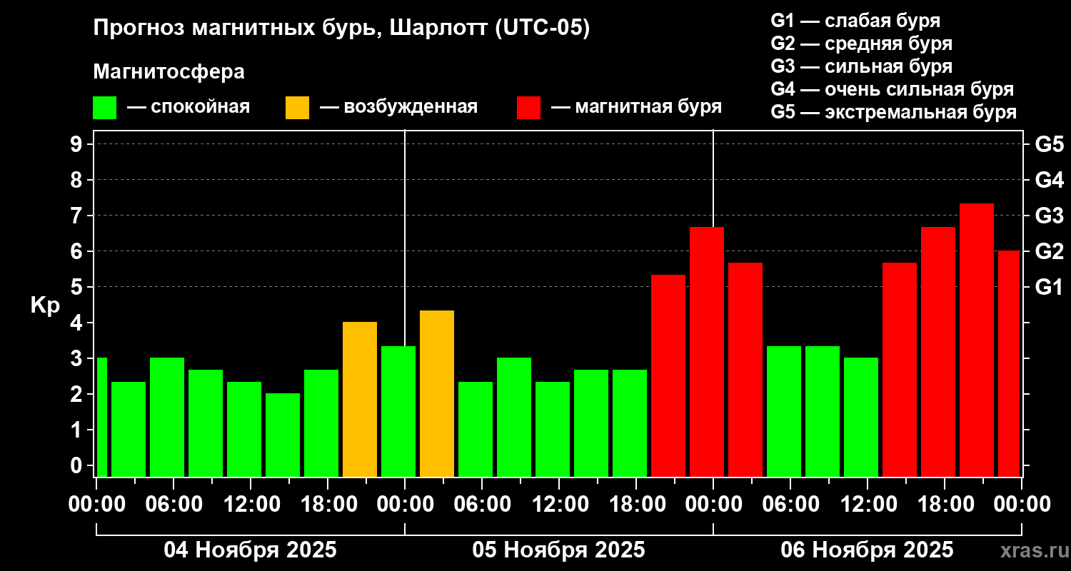 Прогноз магнитных бурь в Шарлотте — 4 ноября 2025 года