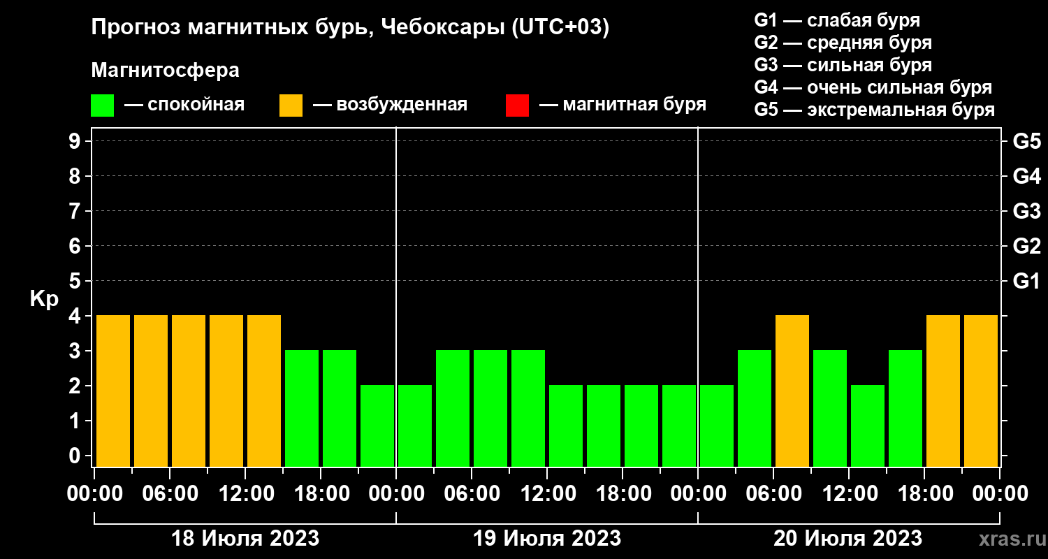 Прогноз магнитных бурь Чебоксарах — 18 июля 2023 года