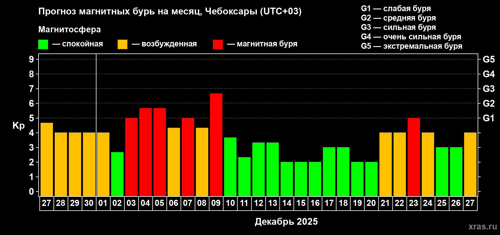 Прогноз магнитных бурь Чебоксарах — 27 ноября 2025 года