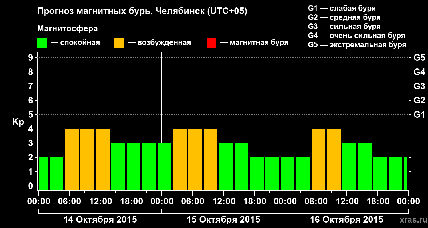 Прогноз магнитных бурь в Челябинске — 14 октября 2015 года