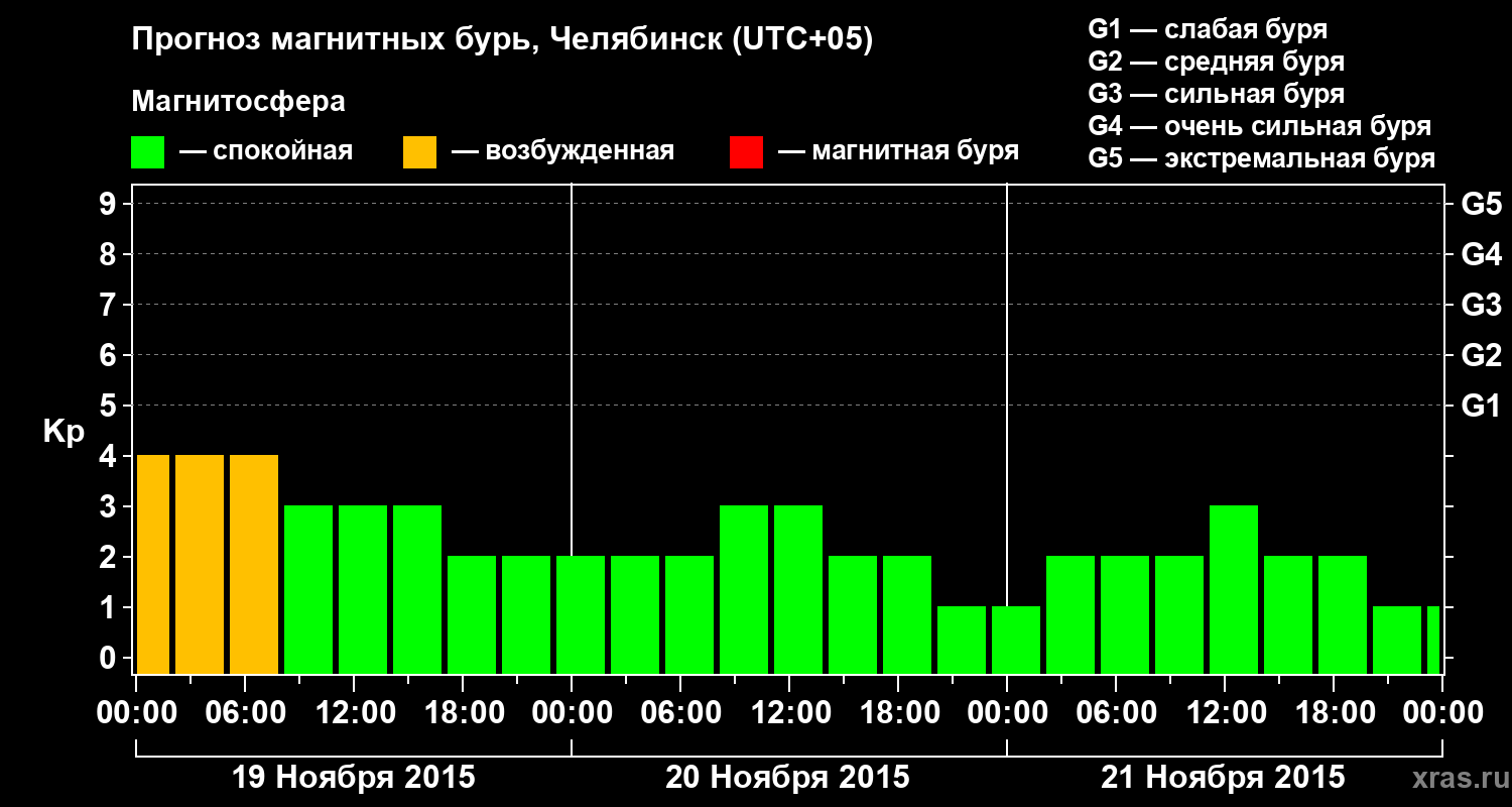 Прогноз магнитных бурь в Челябинске — 19 ноября 2015 года