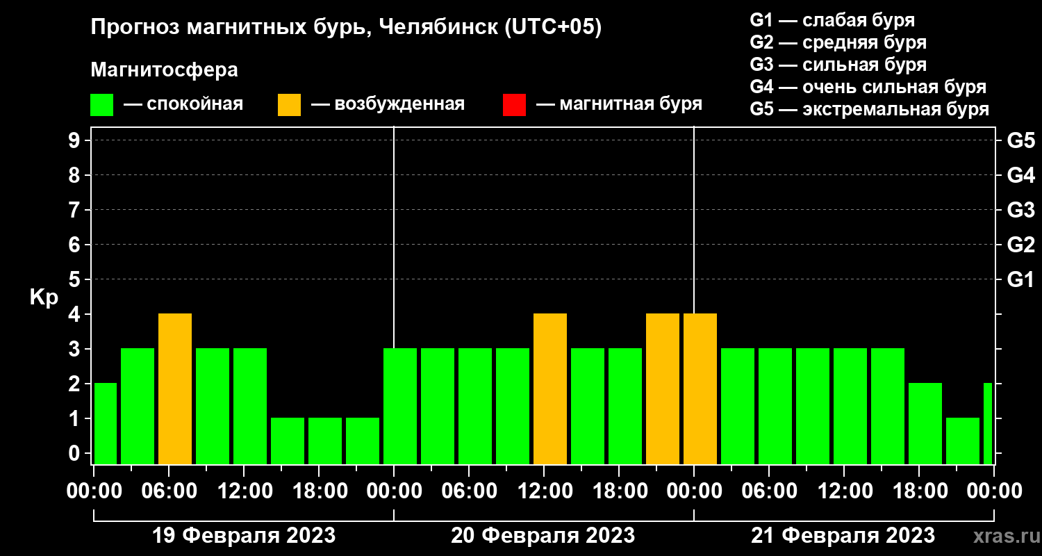 Прогноз магнитных бурь в Челябинске — 19 февраля 2023 года