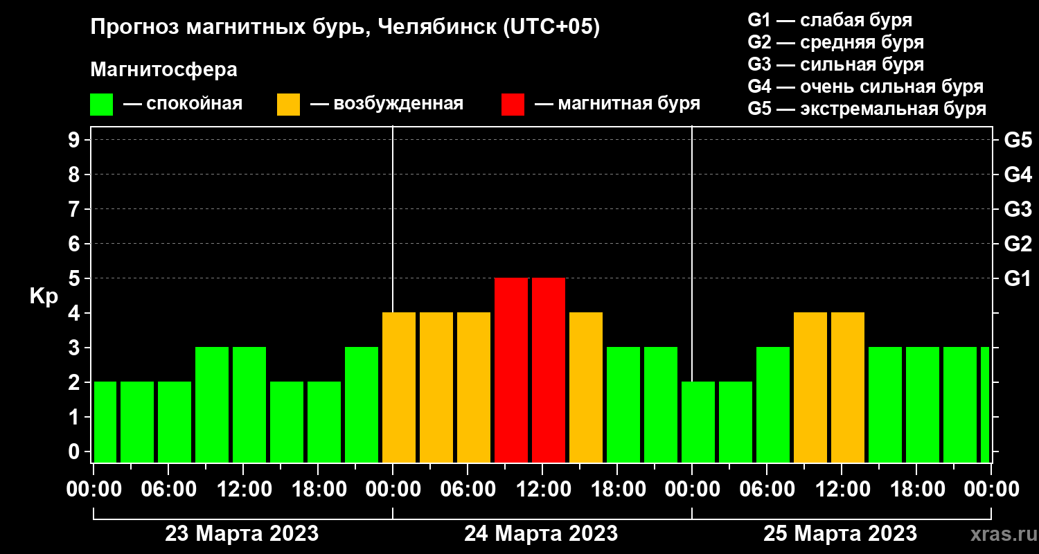 Прогноз магнитных бурь в Челябинске на 23 марта 2023 года