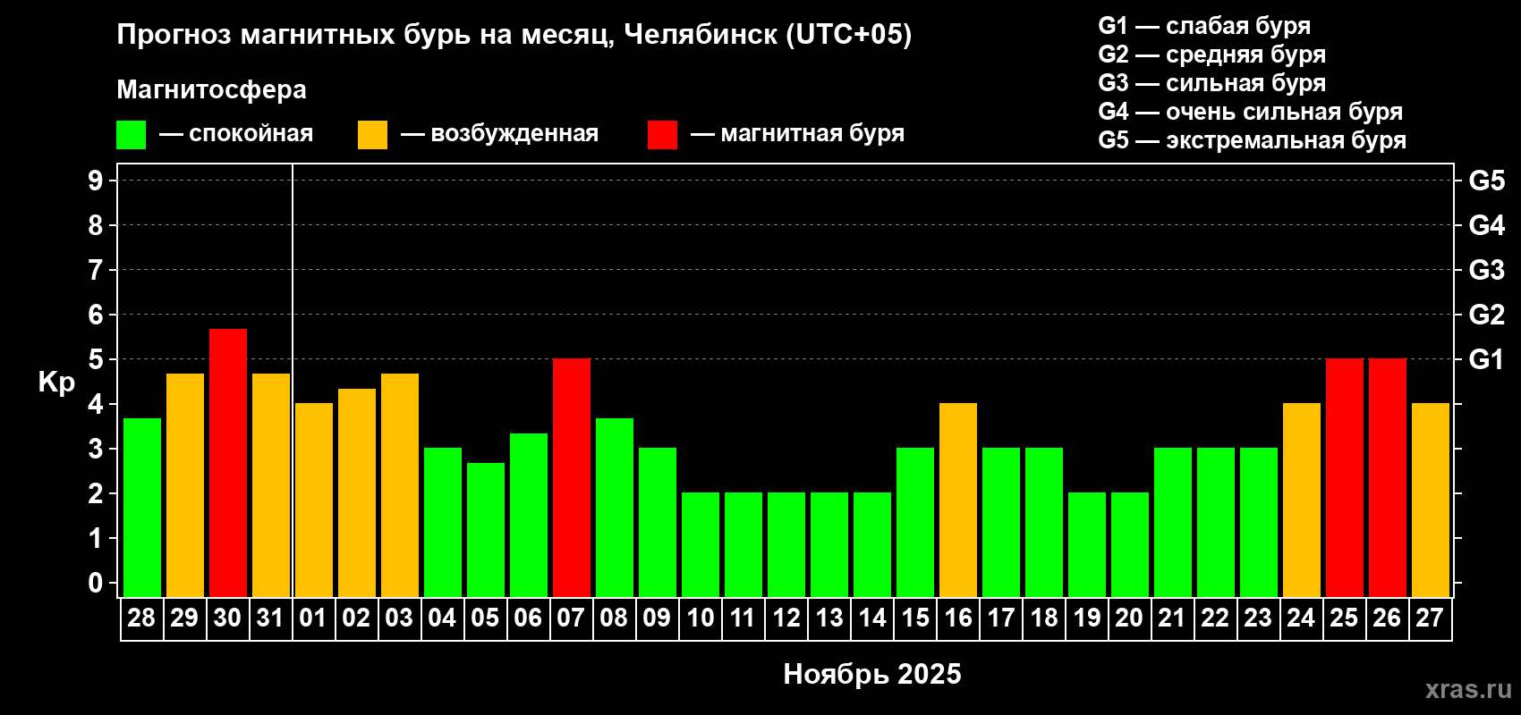 Прогноз магнитных бурь в Челябинске — 28 октября 2025 года