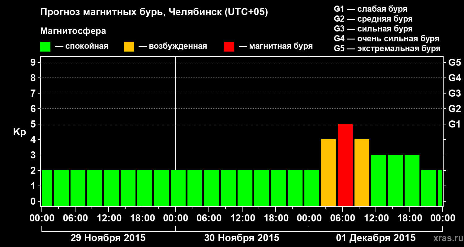 Прогноз магнитных бурь в Челябинске — 29 ноября 2015 года
