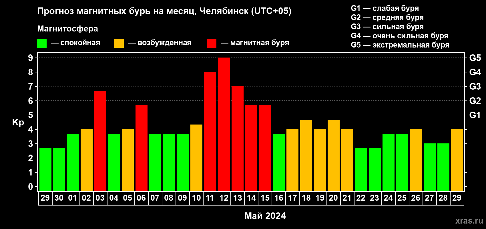 Прогноз магнитных бурь в Челябинске — 29 апреля 2024 года