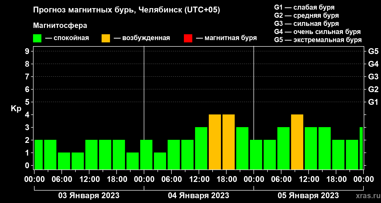 Прогноз магнитных бурь в Челябинске — 3 января 2023 года
