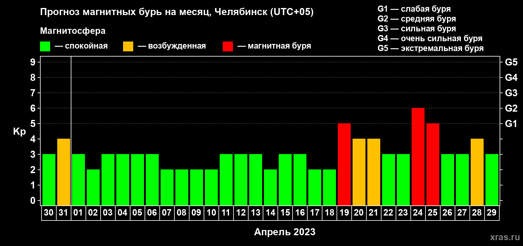 Прогноз магнитных бурь в Челябинске — 30 марта 2023 года
