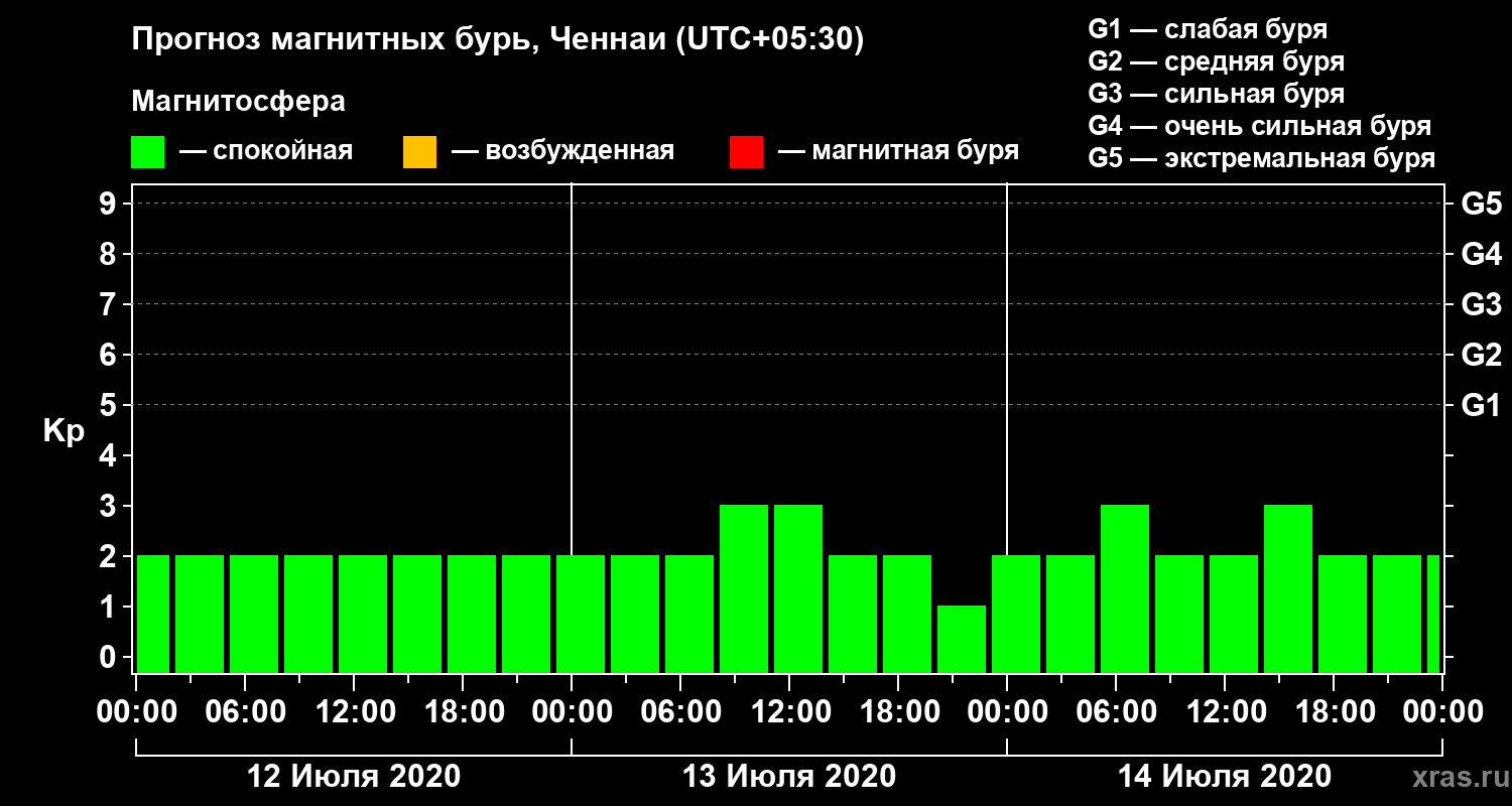 Прогноз магнитных бурь Ченнаи на 12 июля 2020 года