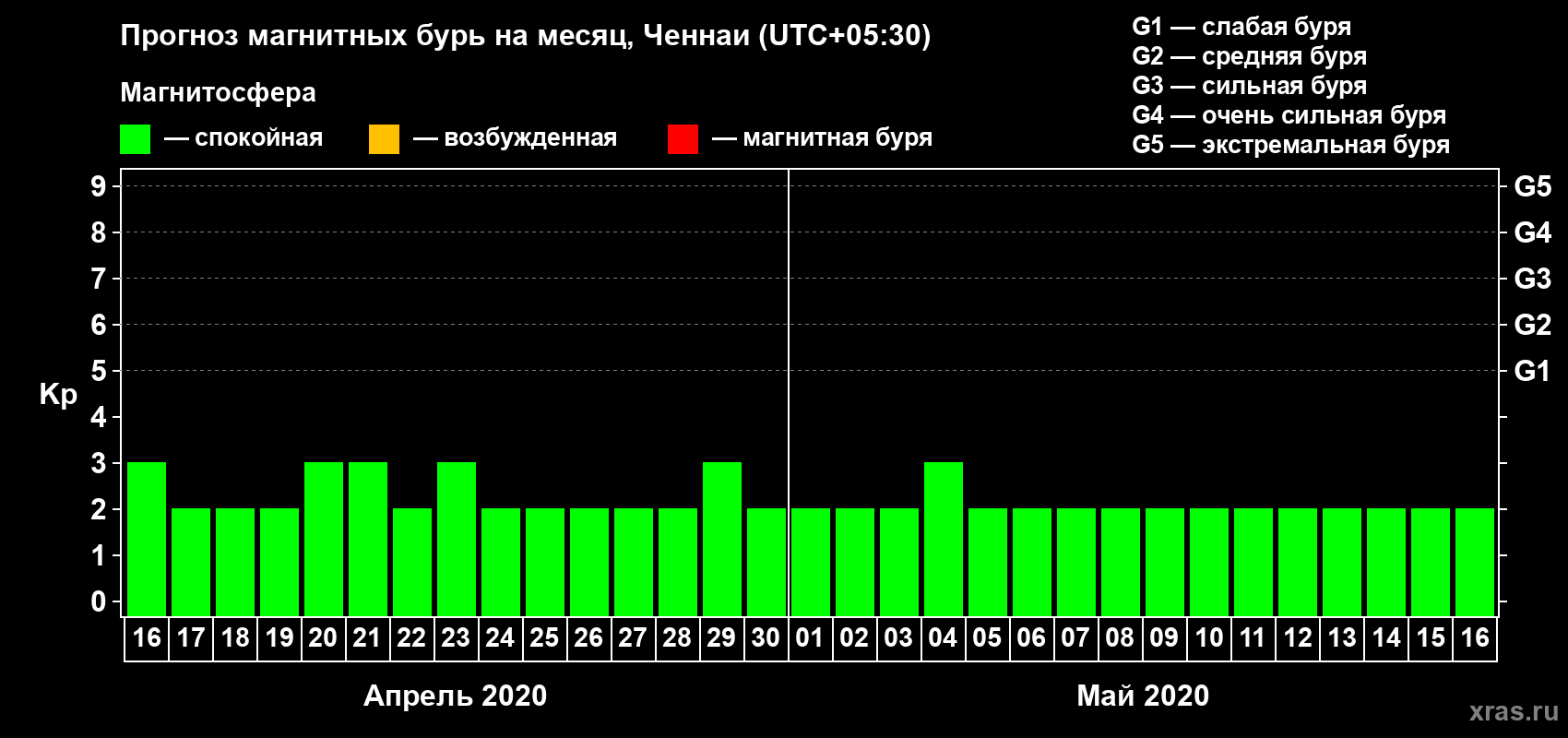 Прогноз магнитных бурь Ченнаи на 16 апреля 2020 года