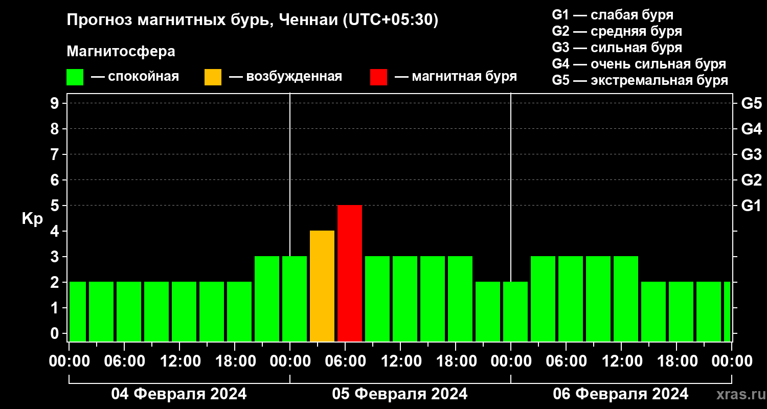 Прогноз магнитных бурь Ченнаи — 4 февраля 2024 года