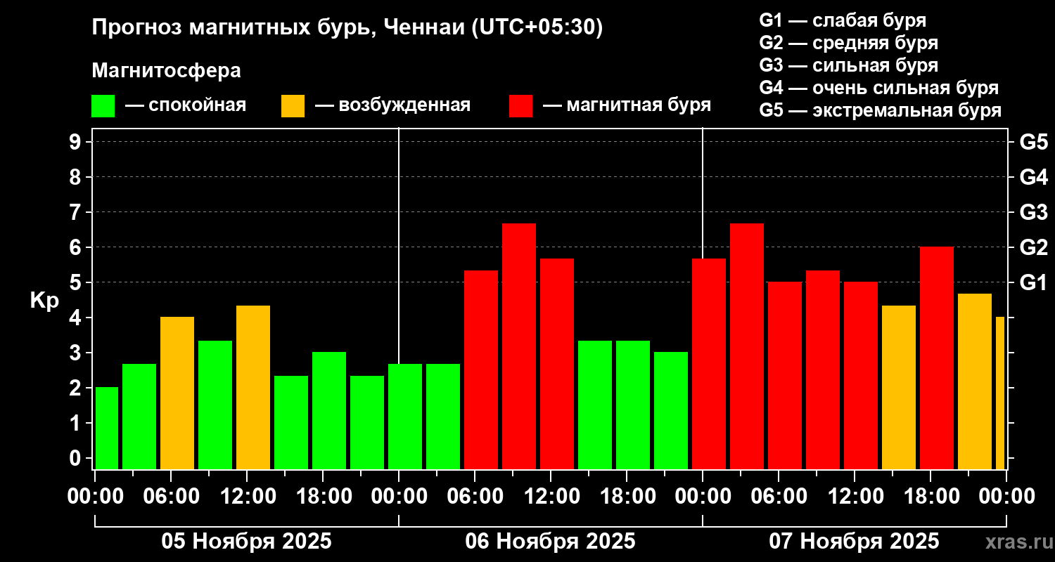 Прогноз магнитных бурь Ченнаи на 5 ноября 2025 года