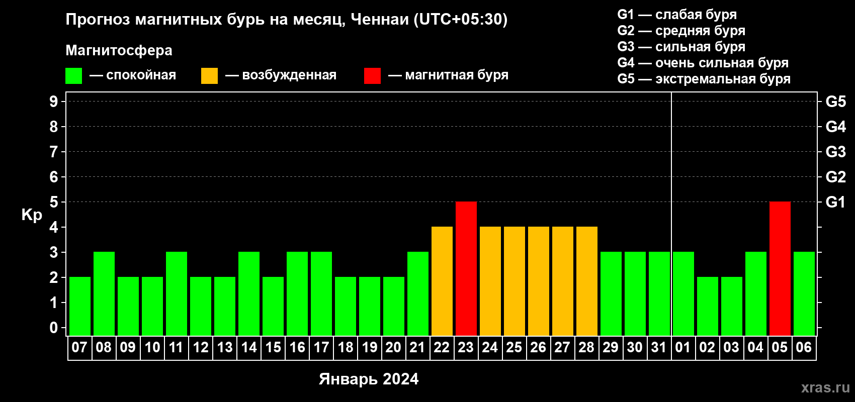 Прогноз магнитных бурь Ченнаи — 7 января 2024 года