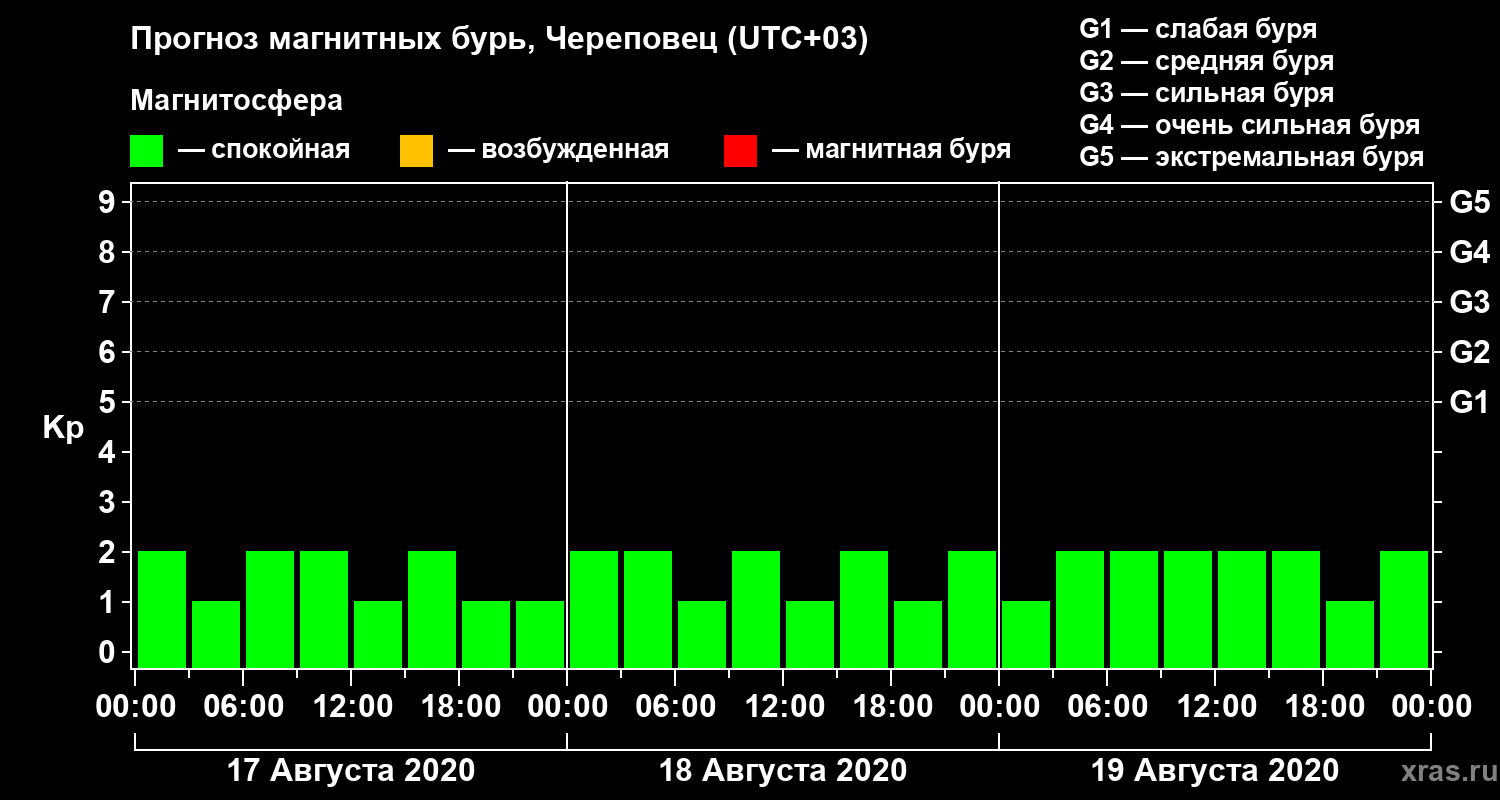 Прогноз магнитных бурь Череповце — 17 августа 2020 года