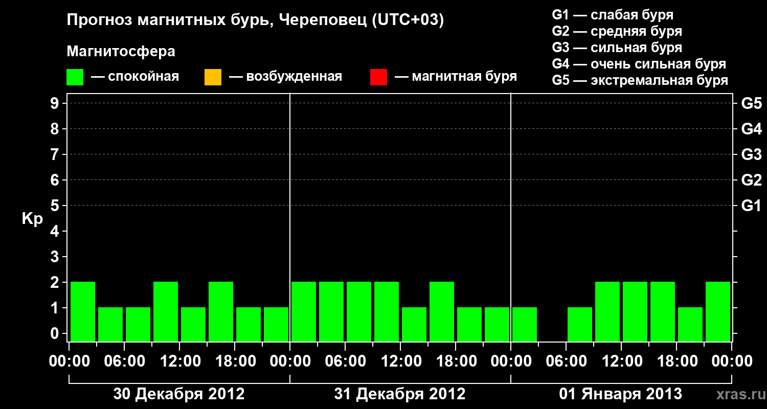 Прогноз магнитных бурь Череповце — 30 декабря 2012 года