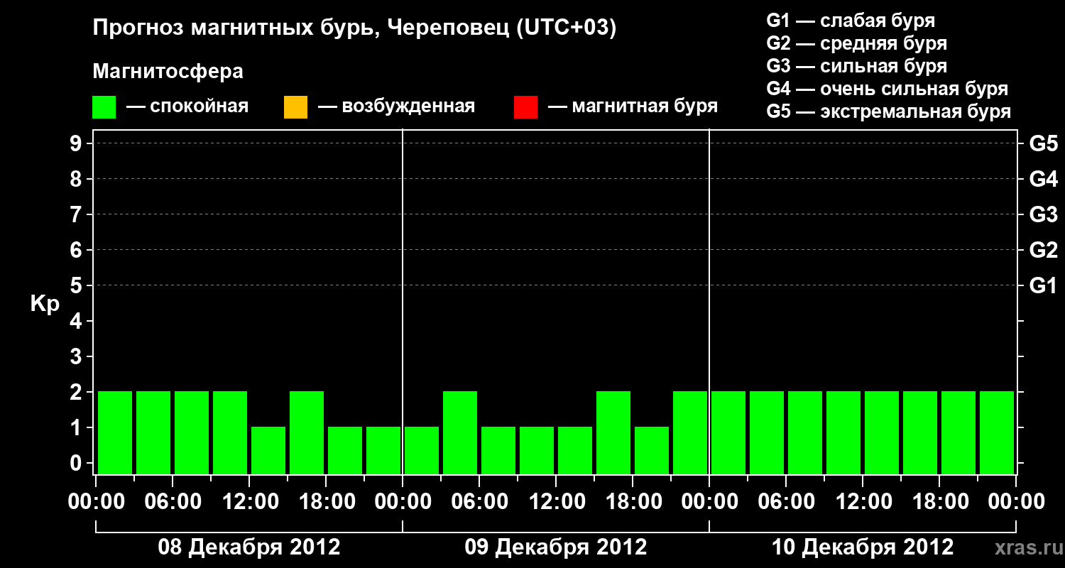 Прогноз магнитных бурь Череповце на 8 декабря 2012 года