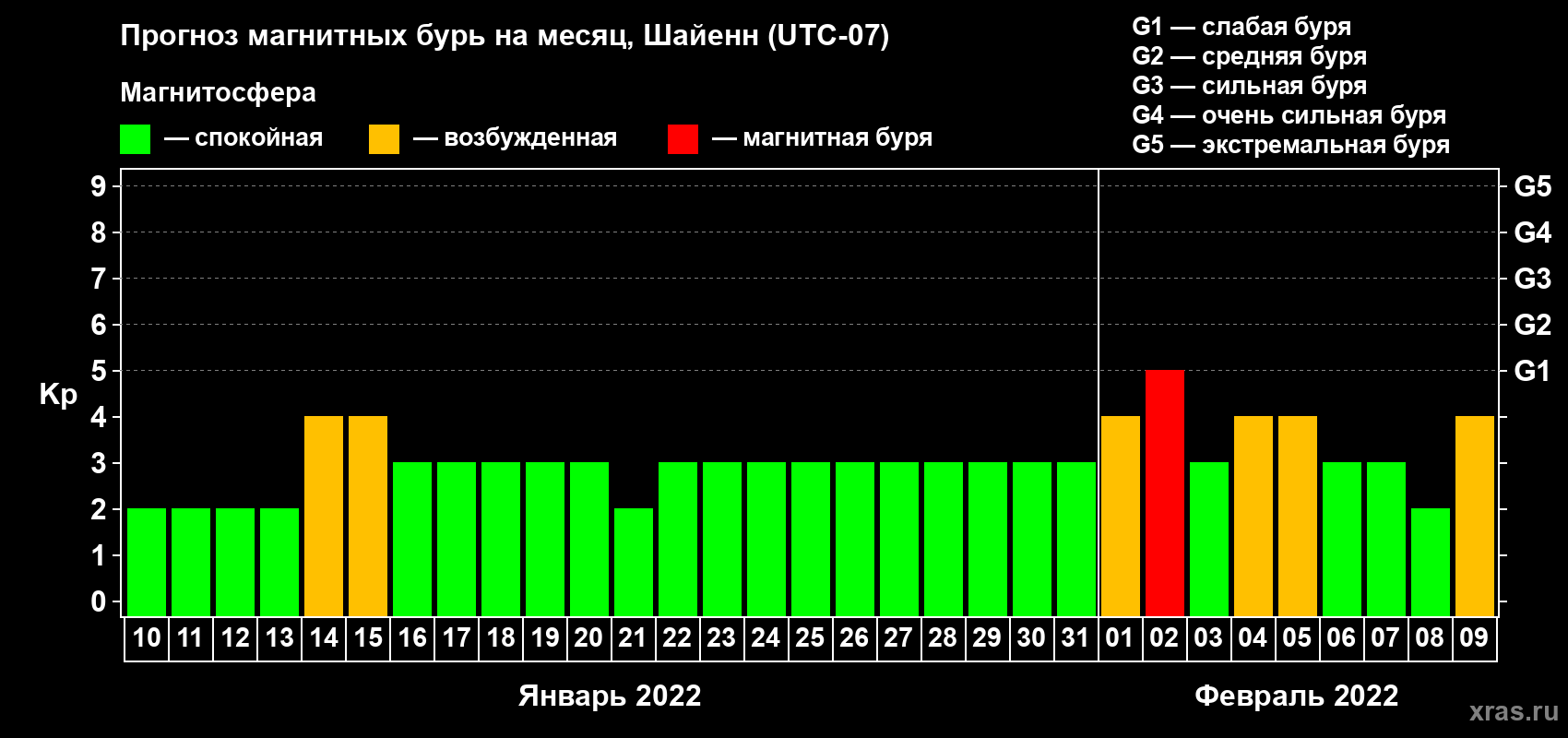 Прогноз магнитных бурь в Шайенне — 10 января 2022 года