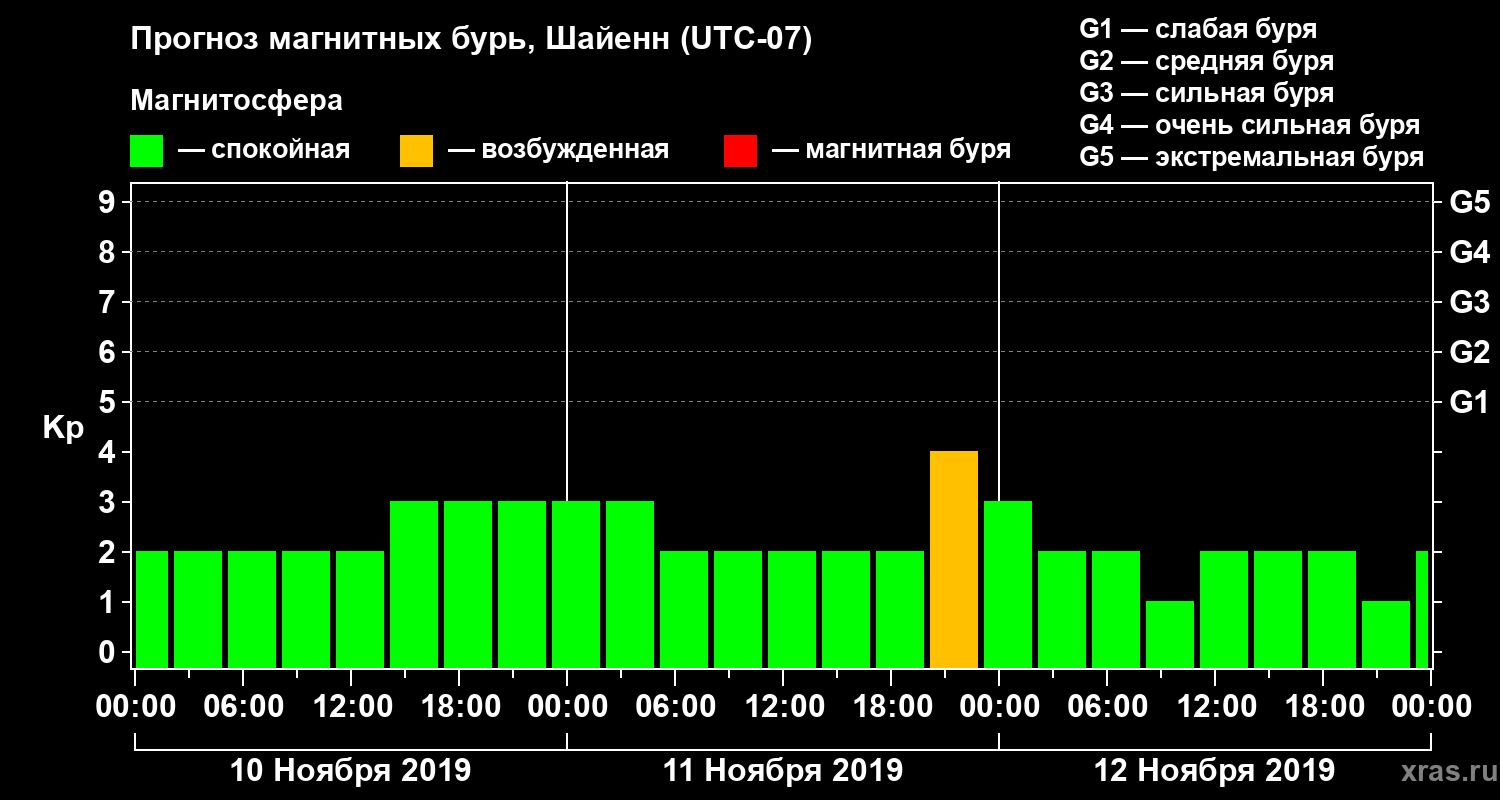 Прогноз магнитных бурь в Шайенне — 10 ноября 2019 года