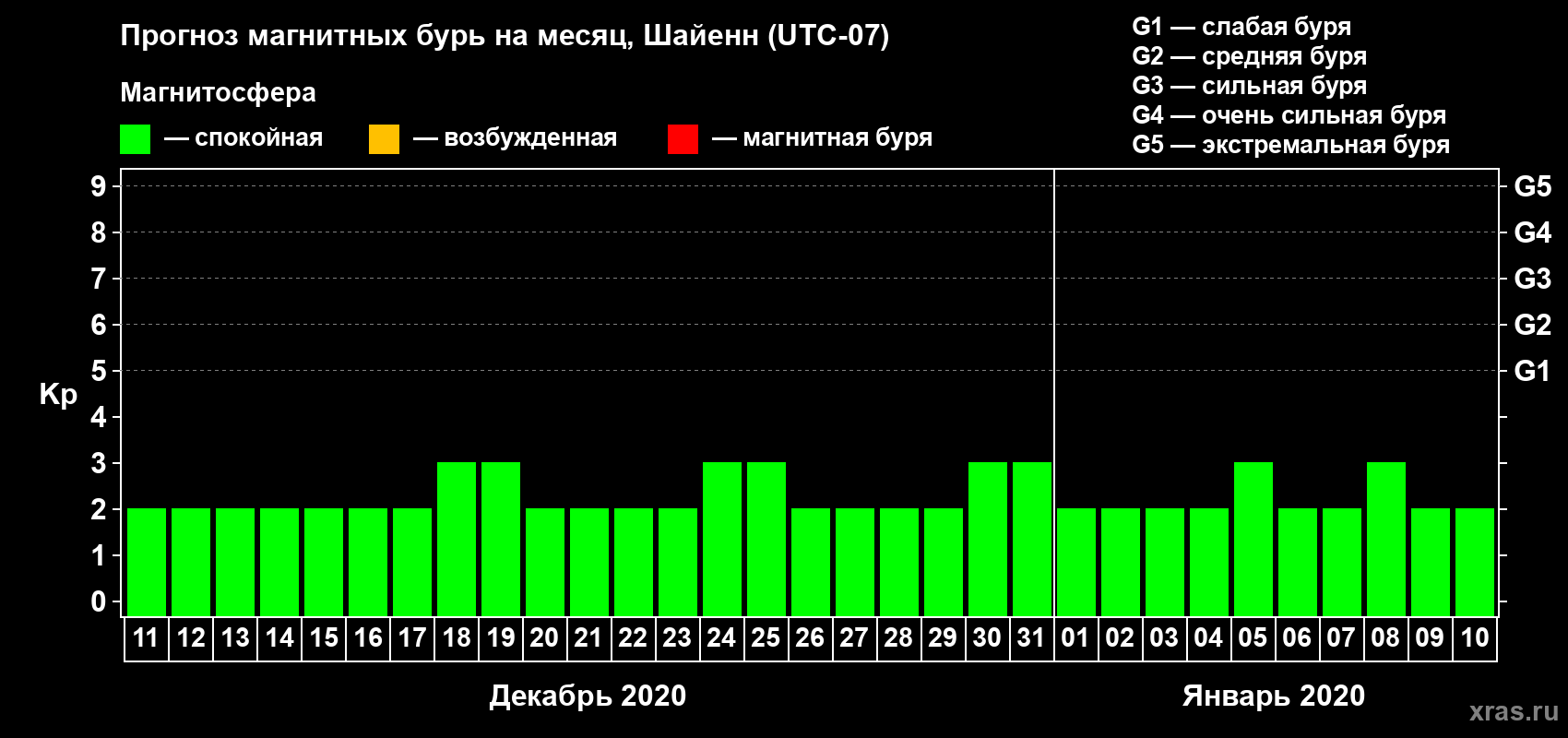 Прогноз магнитных бурь в Шайенне — 11 декабря 2019 года