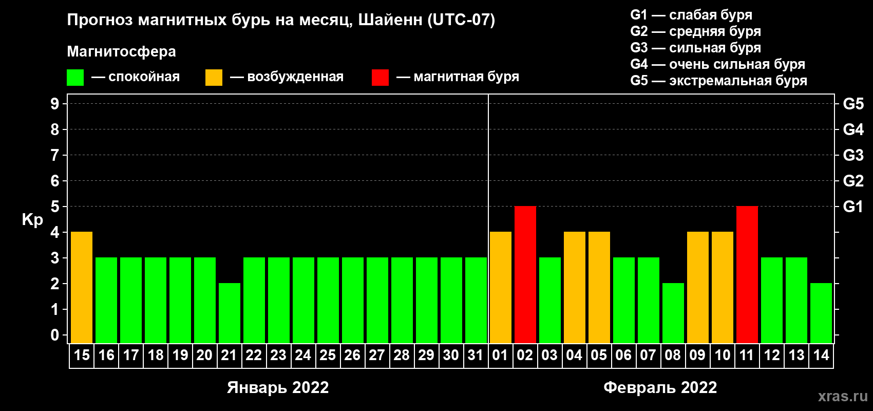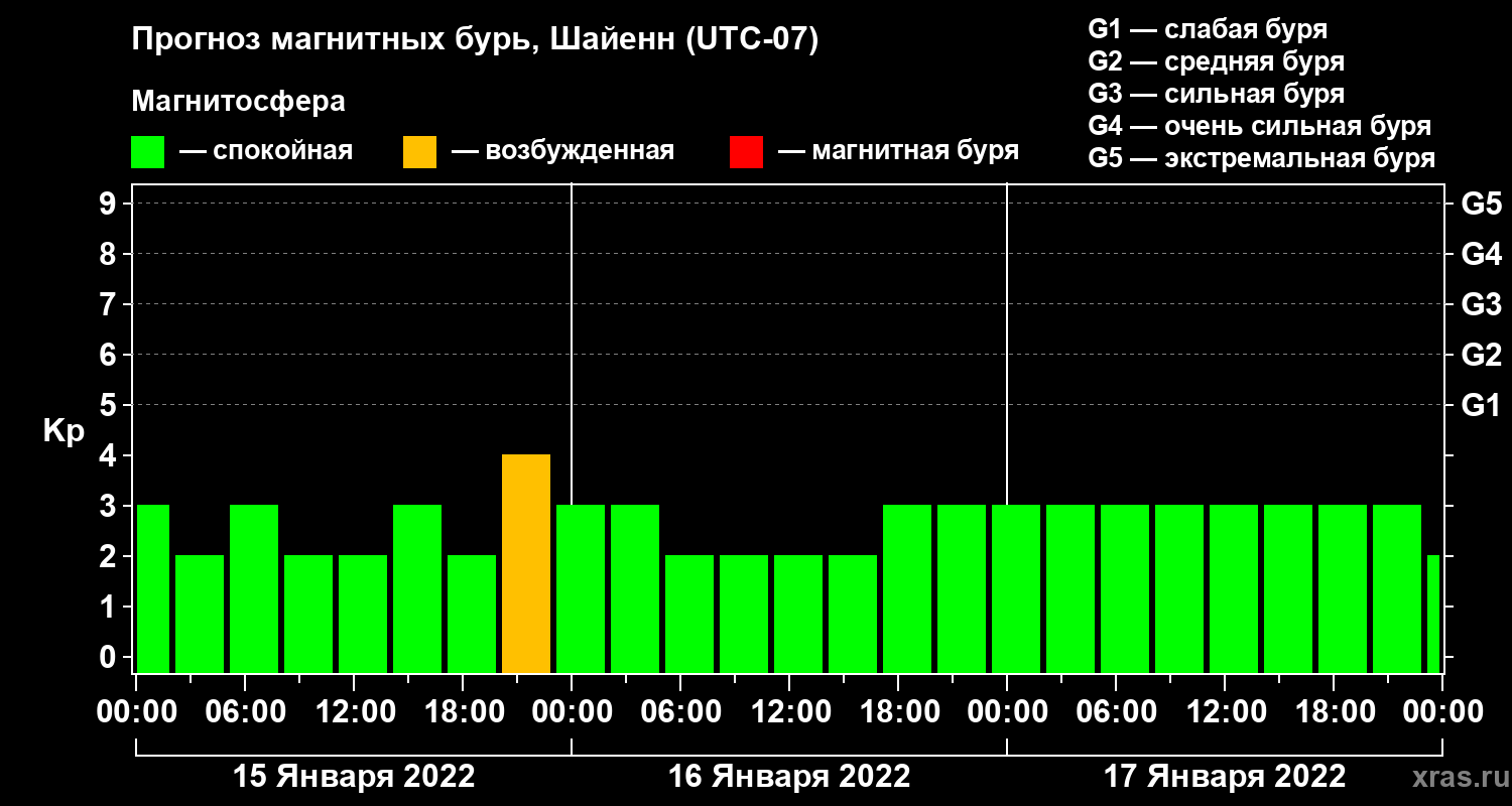 Прогноз магнитных бурь в Шайенне — 15 января 2022 года