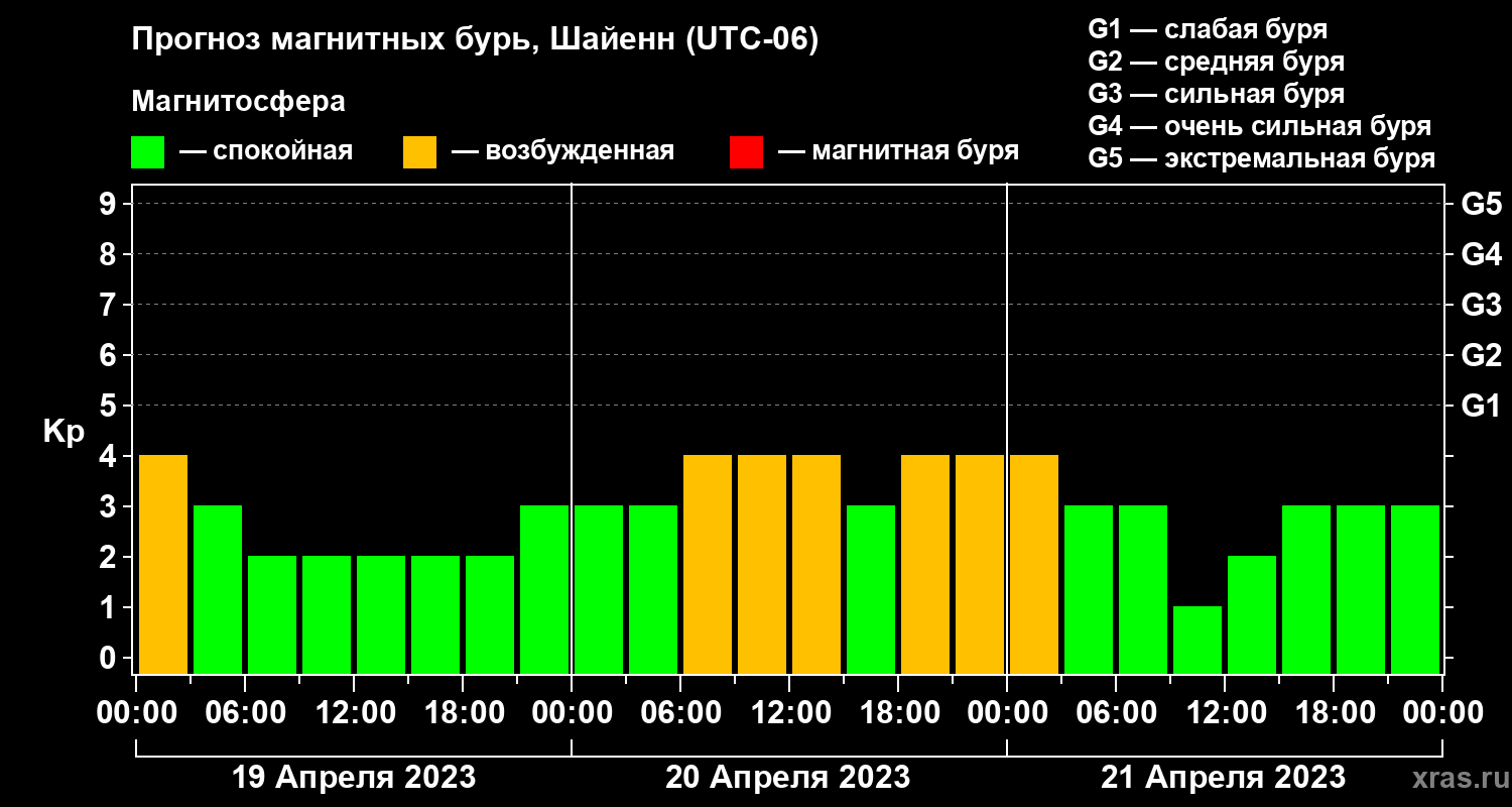 Прогноз магнитных бурь в Шайенне — 19 апреля 2023 года
