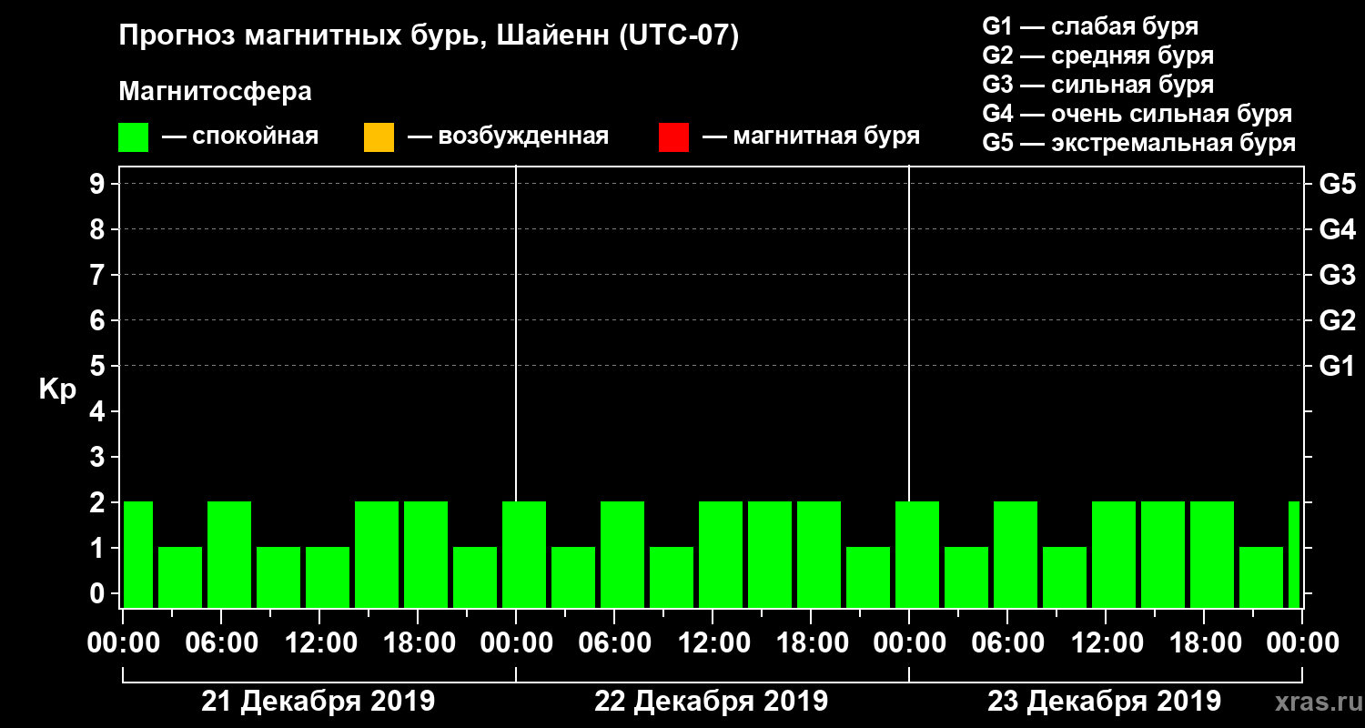 Прогноз магнитных бурь в Шайенне — 21 декабря 2019 года