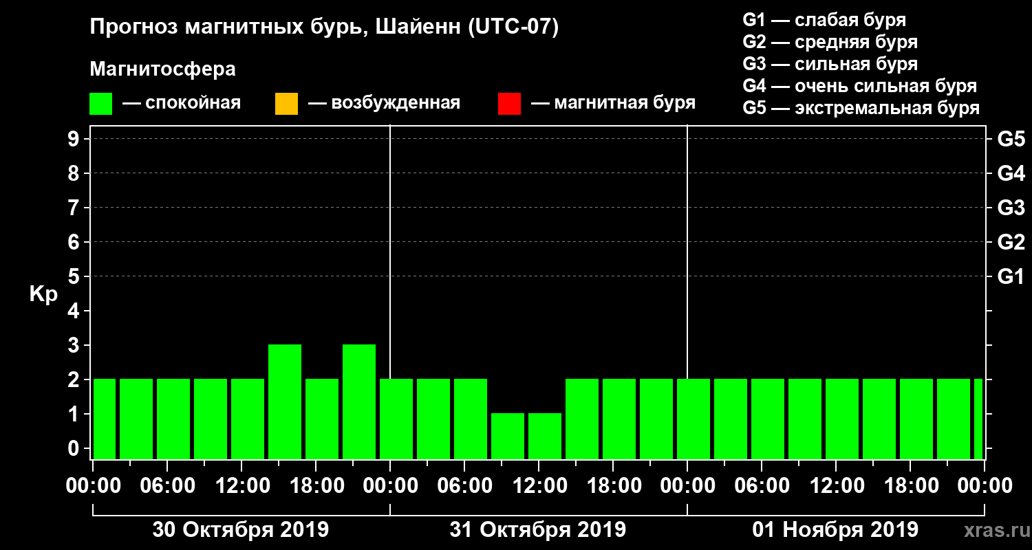 Прогноз магнитных бурь в Шайенне — 30 октября 2019 года