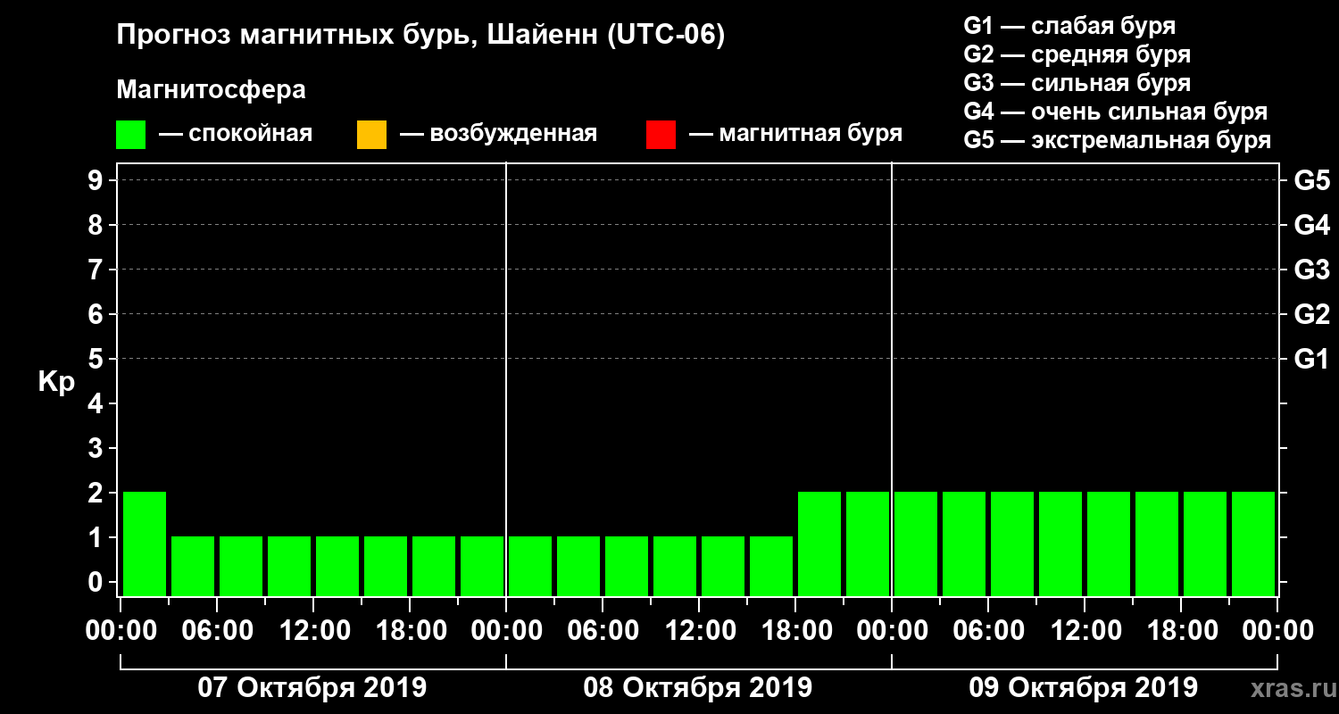 Прогноз магнитных бурь в Шайенне — 7 октября 2019 года