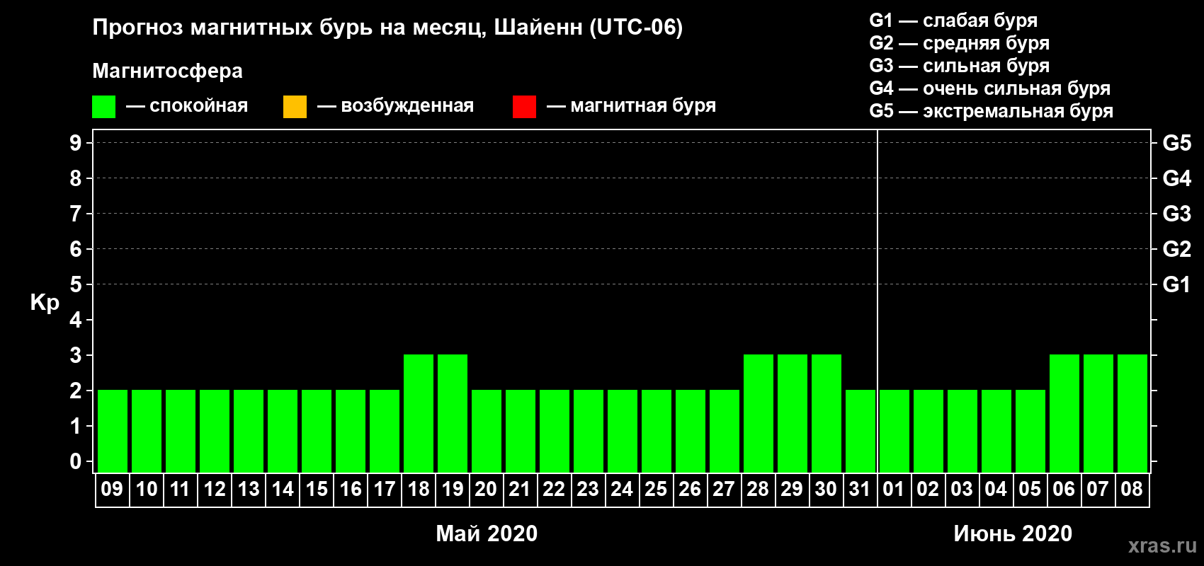 Прогноз магнитных бурь в Шайенне — 9 мая 2020 года