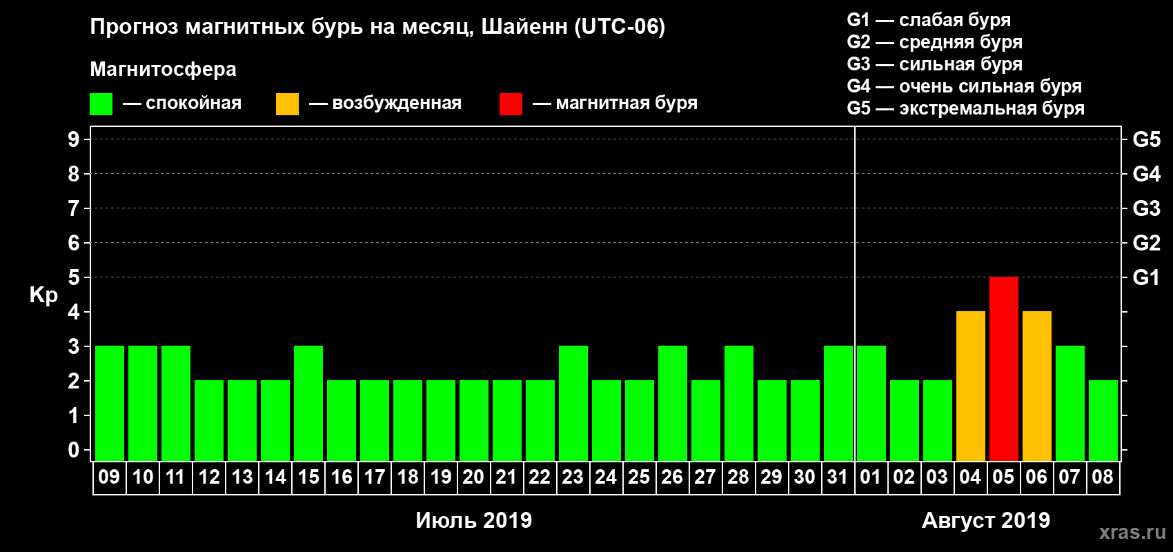 Прогноз магнитных бурь в Шайенне — 9 июля 2019 года