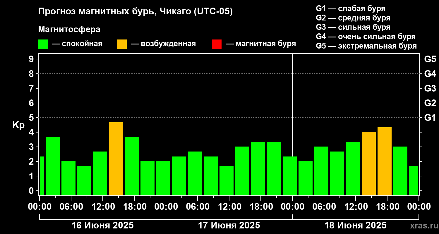 Прогноз магнитных бурь Чикаго — 16 июня 2025 года