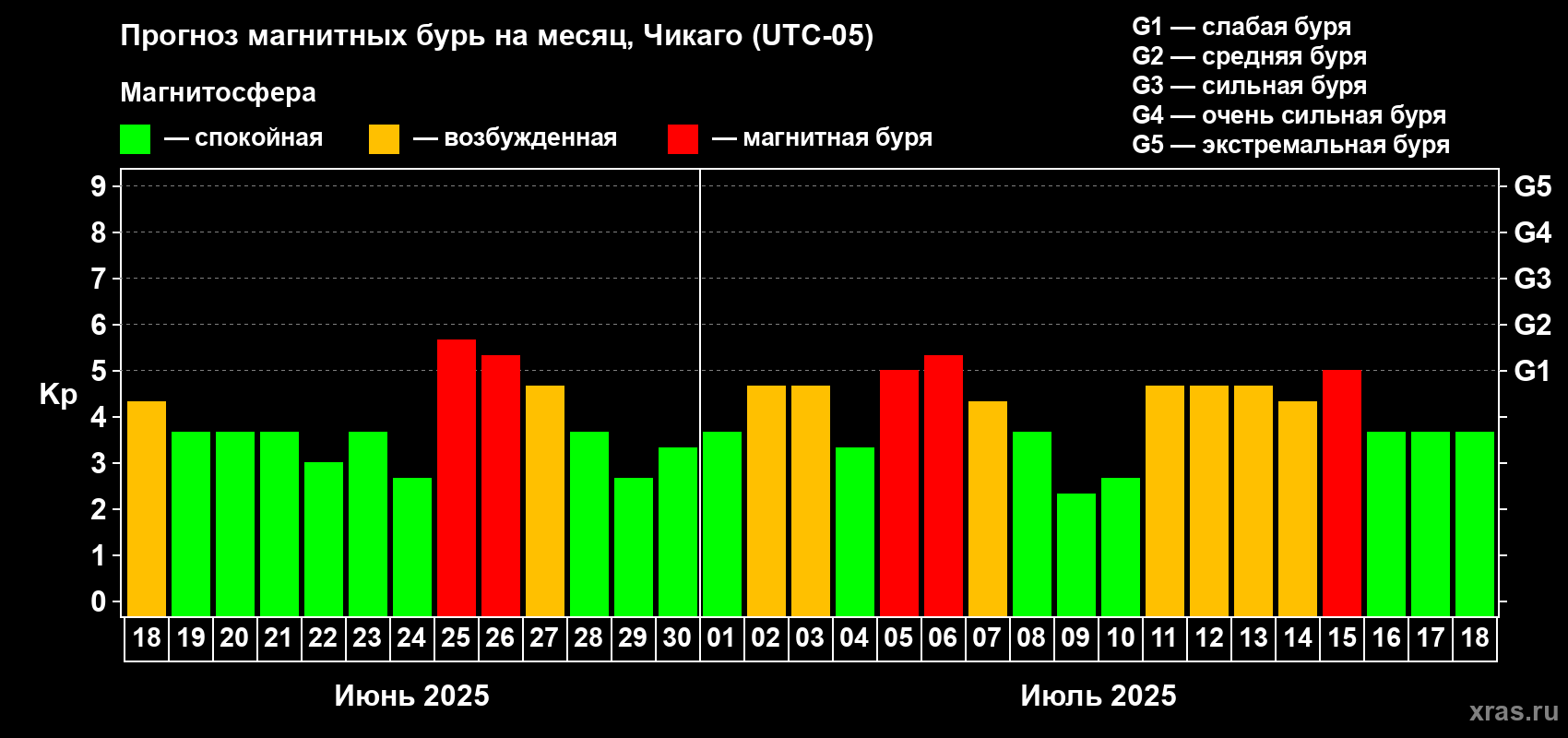 Прогноз магнитных бурь Чикаго на 18 июня 2025 года