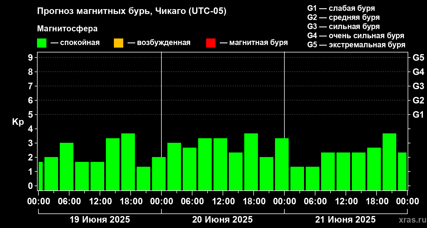 Прогноз магнитных бурь Чикаго на 19 июня 2025 года