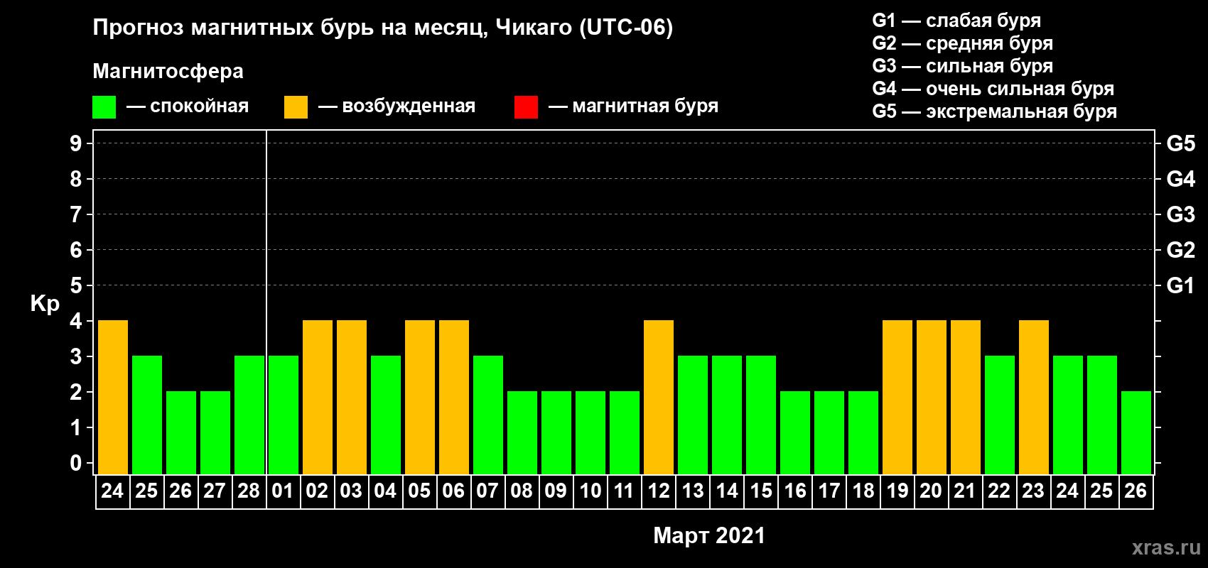 Прогноз магнитных бурь Чикаго — 24 февраля 2021 года