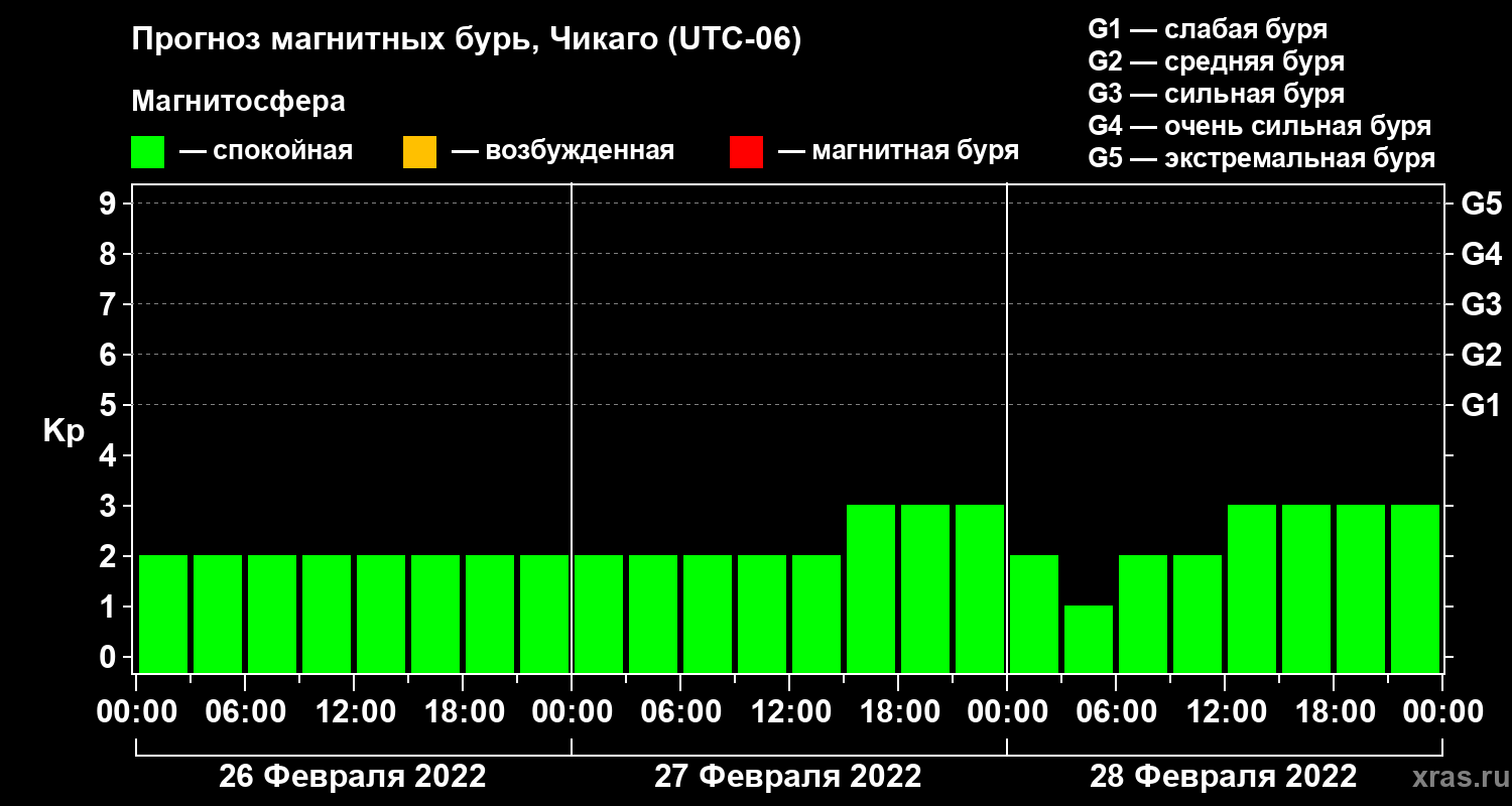 Прогноз магнитных бурь Чикаго — 26 февраля 2022 года
