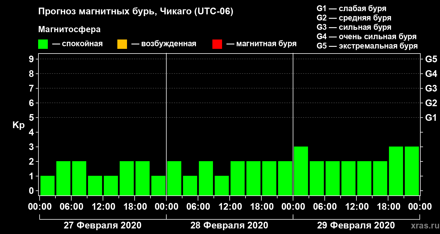 Прогноз магнитных бурь Чикаго на 27 февраля 2020 года