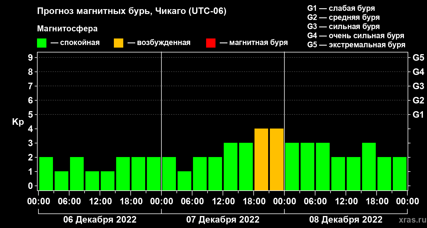 Прогноз магнитных бурь Чикаго — 6 декабря 2022 года