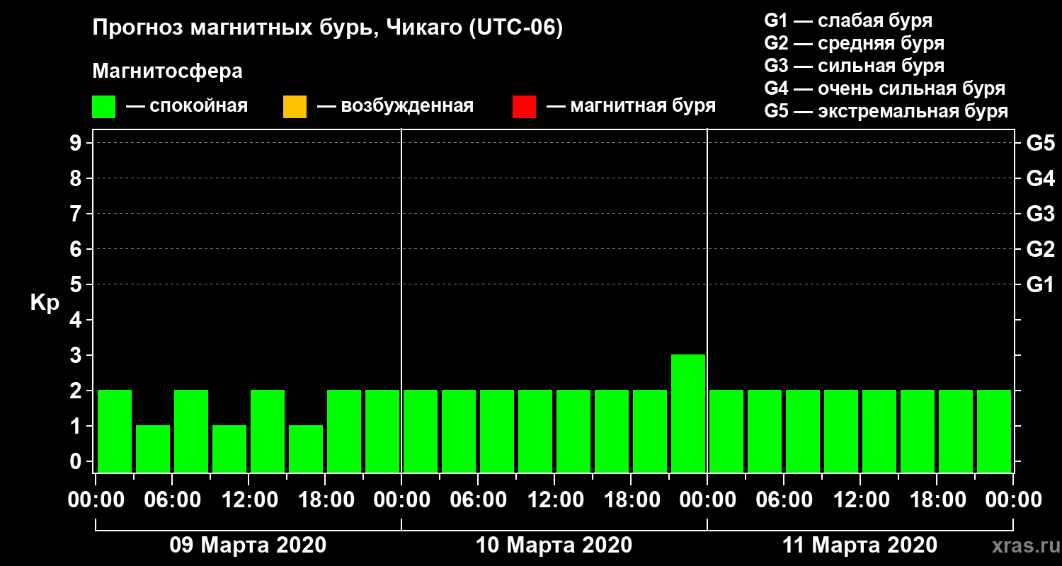 Прогноз магнитных бурь Чикаго — 9 марта 2020 года